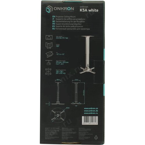 Крепежи для проекторов ONKRON K3A белый Потолочно-настенный кронштейн для проектора [K3A-W]