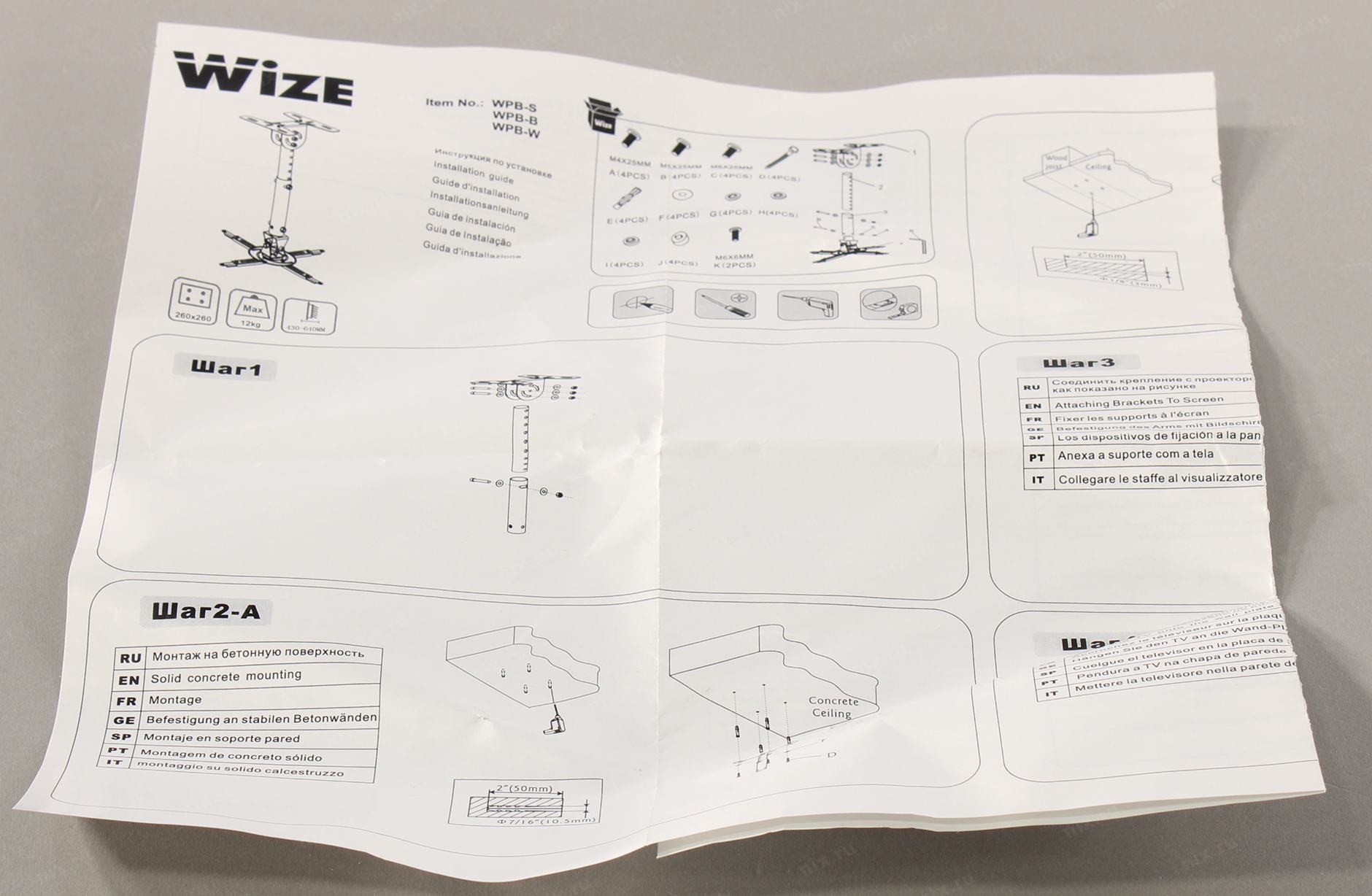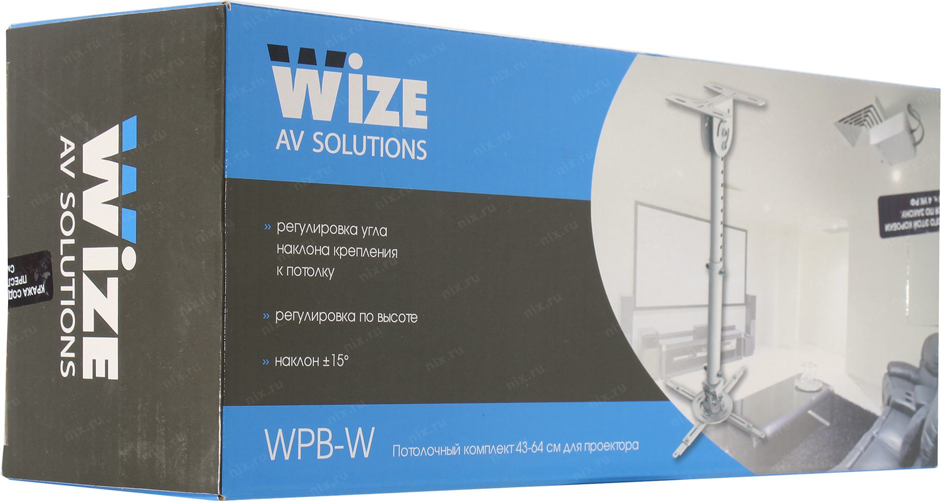Крепежи для проекторов Wize WPB-W белый (Потолочные, Макс. крепежное расстояние 260х260, макс. вес нагрузки 12 кг, Наклон,поворот °+/-15, расстояние от стены/ потолка 43-64 см)