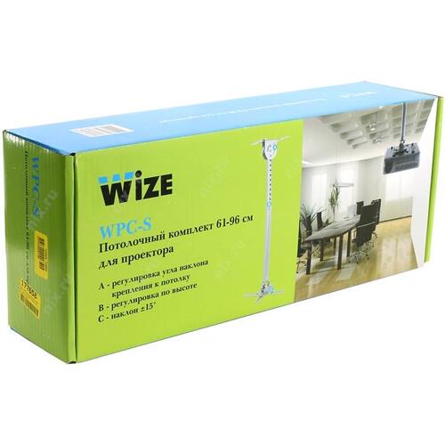 Крепеж Wize WPC-S серебро (Универсальное комплект для проектора, длина штанги 61-96 см, наклон +/- 15°, поворот +/- 15°, до 12 кг, 260х260)