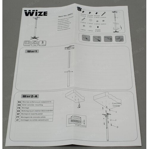 Wize WPC-W белый {Потолочные, Макс. крепежное расстояние 260х260, макс. вес нагрузки 12 кг, Наклон,поворот °+/-15, расстояние от стены/ потолка 61-96 см}