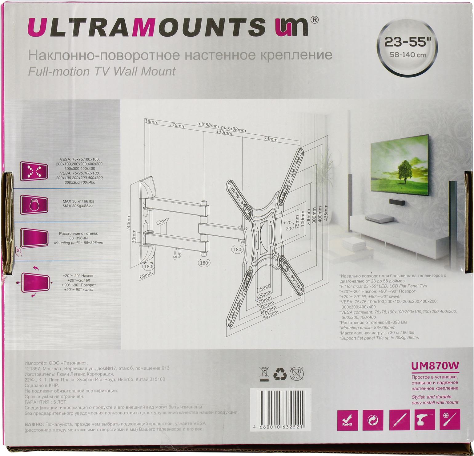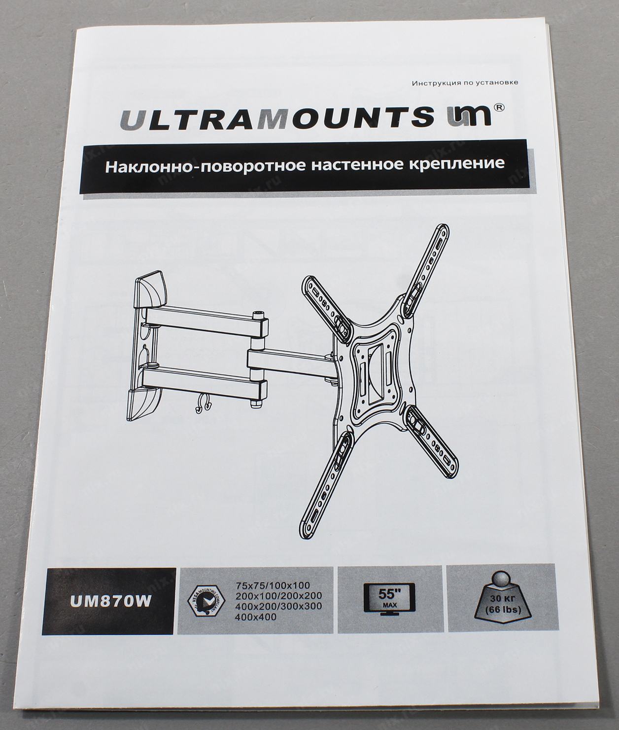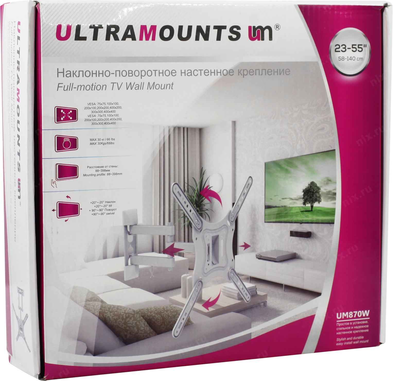 Кронштейн для телевизора Ultramounts UM870W белый 23"-55" макс.30кг настенный поворот и наклон