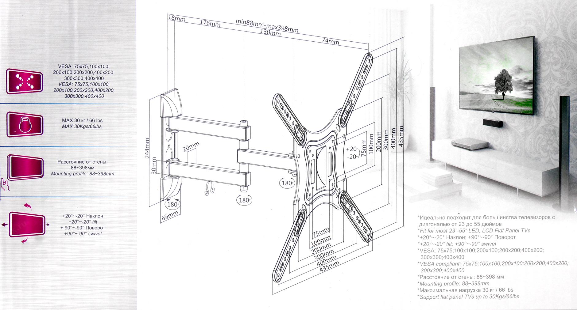 от 23" до 55"