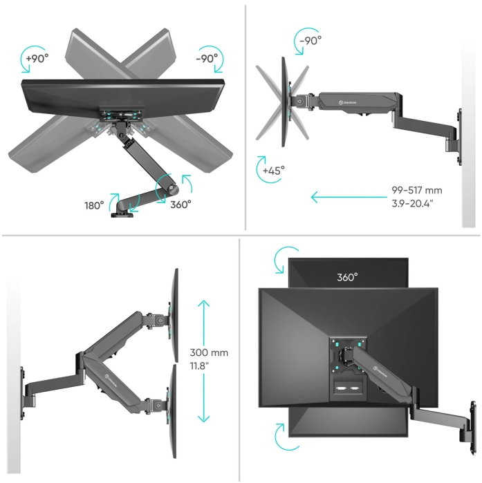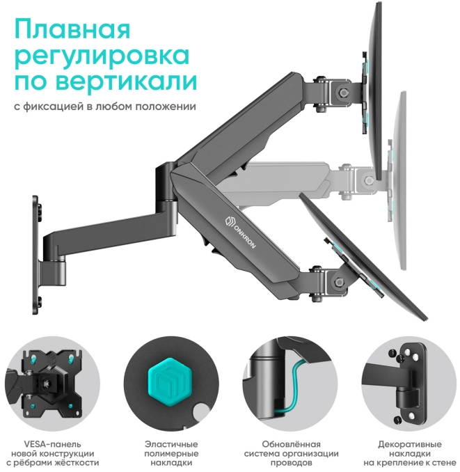 Кронштейн для телевизора Onkron G150 черный 13"-34" макс.8кг настенный поворот и наклон верт.перемещ.