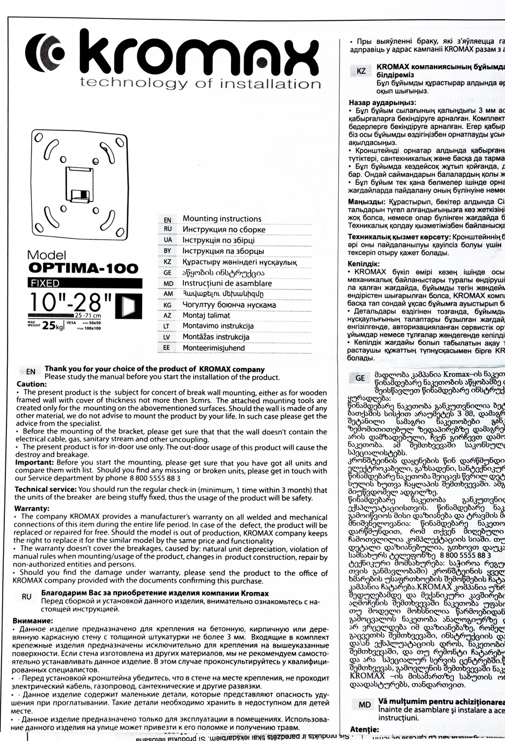 Настенное крепление OPTIMA-100 от Kromax