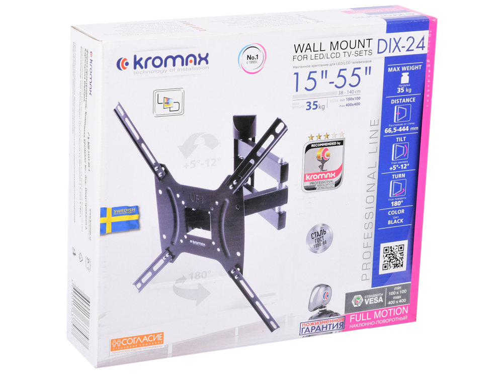 Крепеж Kromax DIX-24 черный 15"-55" макс.35кг настенный поворотно-выдвижной и наклонны [28014]