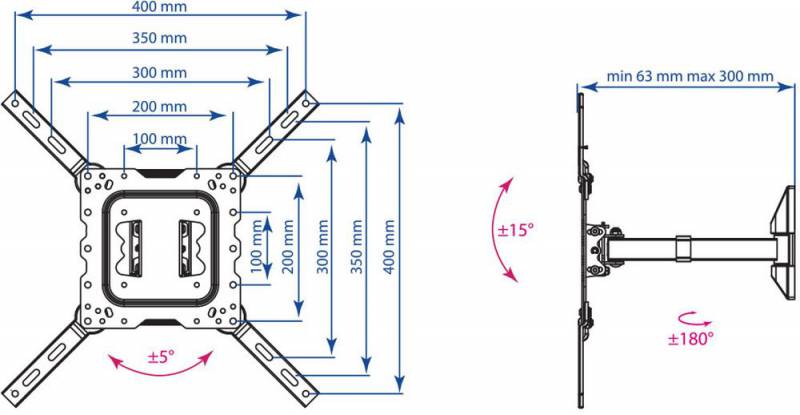 Легкий монтаж. Надежная стальная конструкция. Вращение экрана на ±5 относительно стены. Кабель-канал. Декоративные накладки.