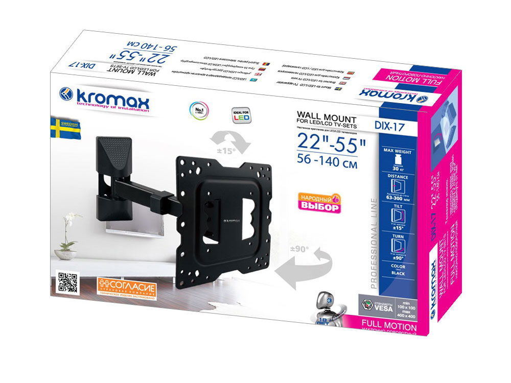 Крепеж Kromax DIX-17 черный 22"-55" макс.40кг настенный поворот и наклон [20205]