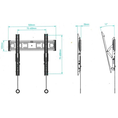VESA 75 x 75, VESA 100 x 100, VESA 200 x 100, VESA 200 x 200, VESA 300 x 200, VESA 300 x 300, VESA 400 x 300, VESA 400 x 400