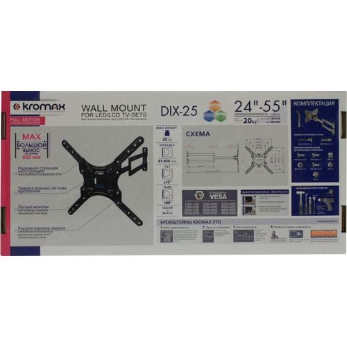 Крепеж Kromax DIX-25 черный 24"-55" макс.20кг настенный поворотно-выдвижной и наклонный [24049]