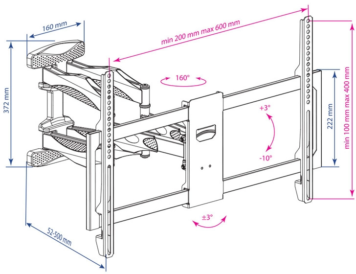 Надежная стальная конструкция. Вращение экрана ±3 . Съемная монтажная пластина. Кабель-канал. Декоративные настенные накладки.