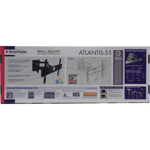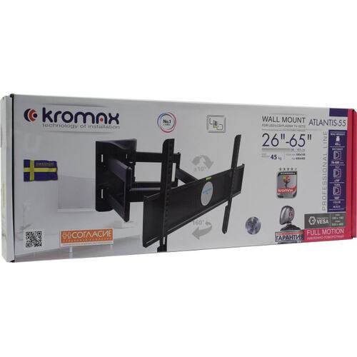 Крепеж Kromax ATLANTIS-55 black (26"-65", max 45 кг, настенный, 4 ст свободы, наклон ±10°, поворот ±60°, от стены 78-497 мм, max VESA 600x400 мм) [29008]