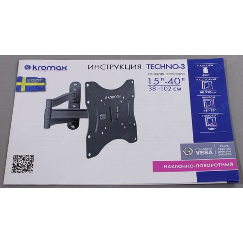 Кронштейн для телевизора Kromax TECHNO-3 белый 15"-40" макс.20кг настенный поворот и наклон 20073
