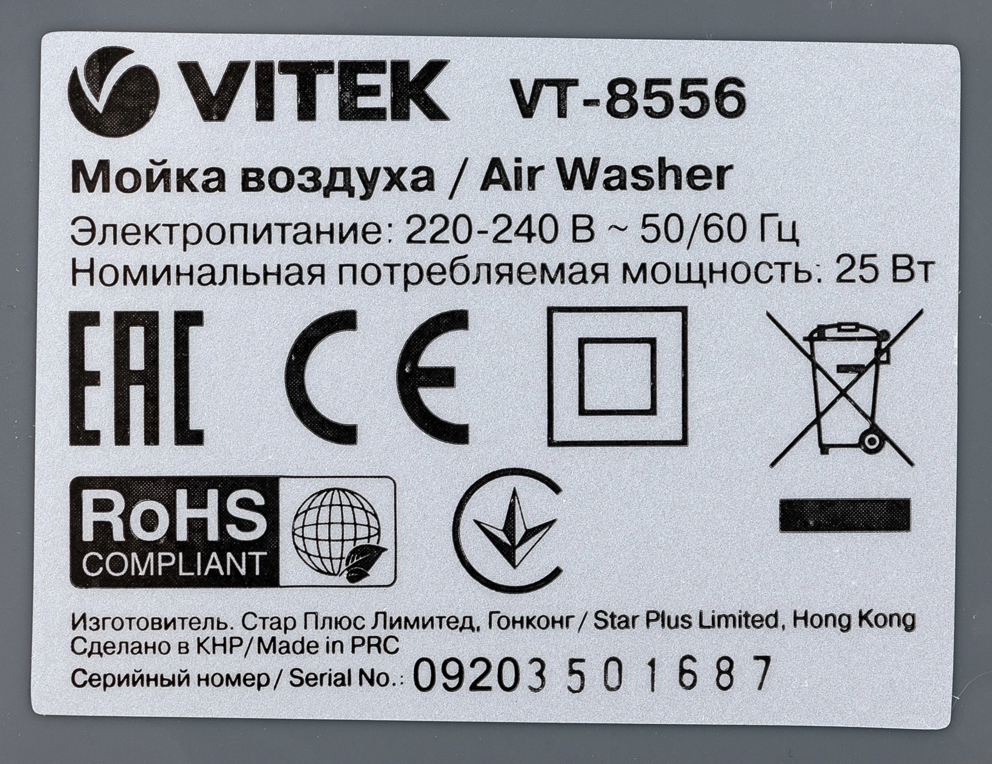 Мойка воздуха Vitek 8556-VT-01 25Вт серый