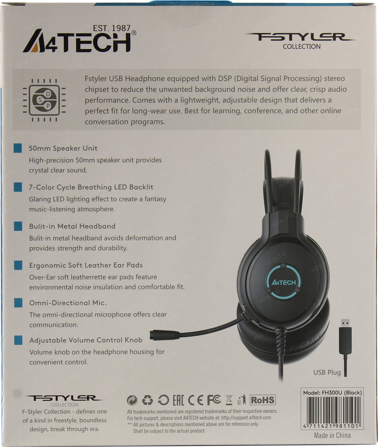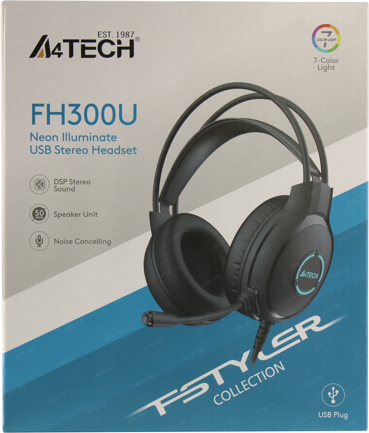 Наушники с микрофоном A4Tech Fstyler FH300U черный 2м мониторные USB оголовье (FH300U BLACK)