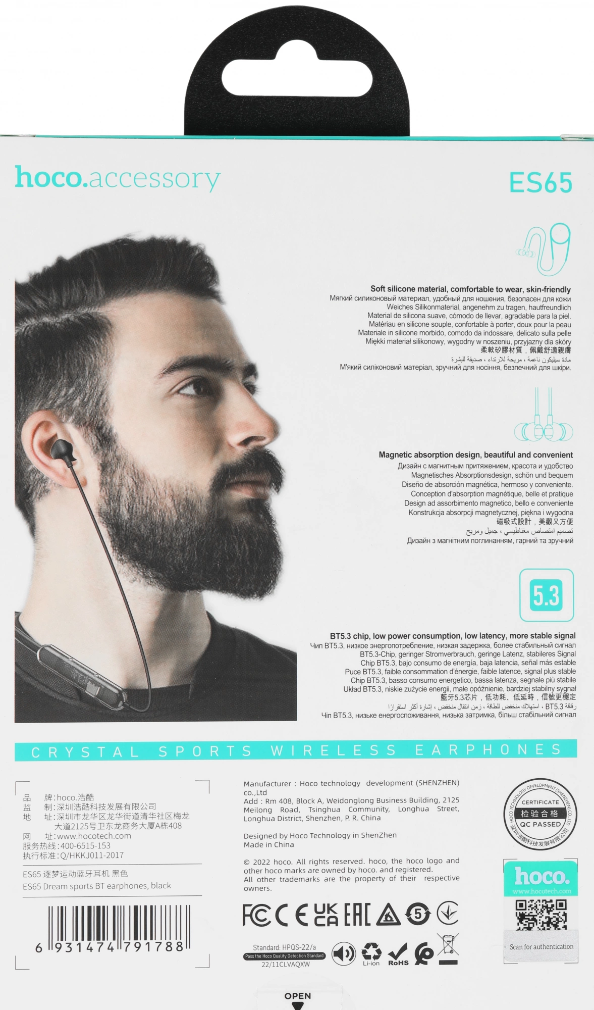 Гарнитура внутриканальные Hoco ES65 черный беспроводные bluetooth шейный обод