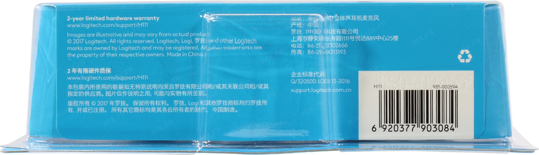 Наушники Logitech Гарнитура Stereo Headset H111, серая, длина кабеля 1,8 м, разъем 3,5 мм, микрофон с функц. шумоподавления
