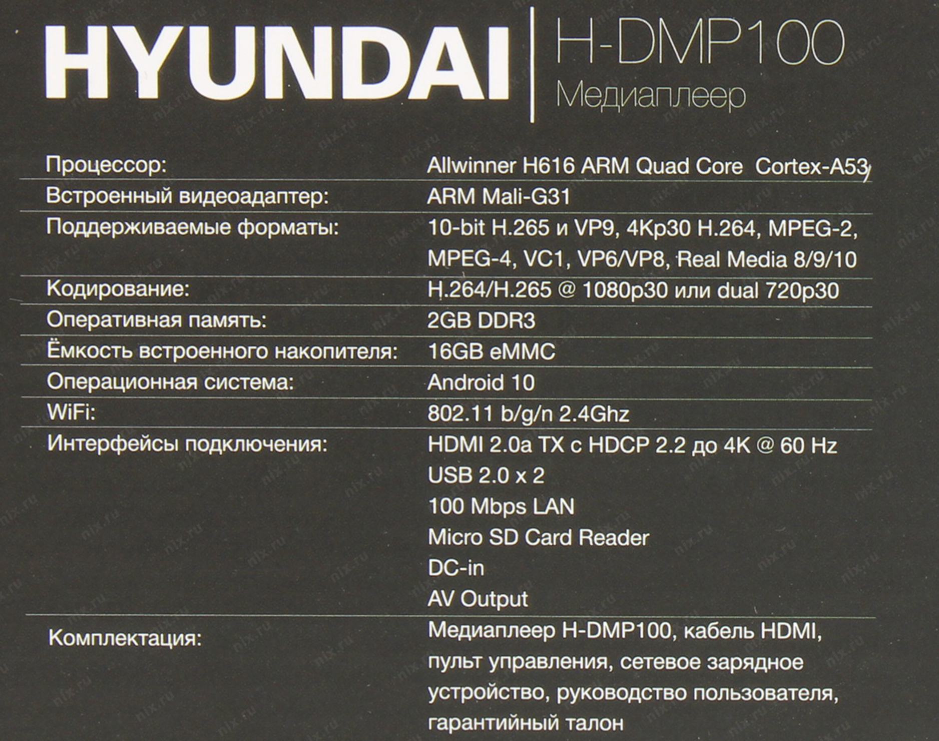 Медиаплеер Hyundai H-DMP100 16Gb