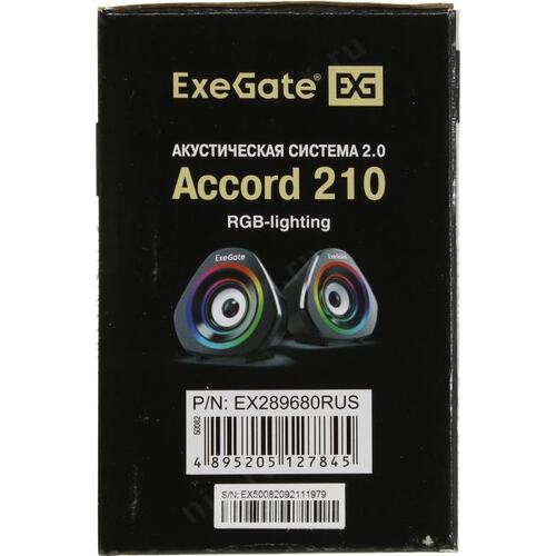 Колонки EXEGATE Exegate EX289680RUS Акустическая система 2.0 ExeGate Accord 210 (питание USB, 2х3Вт (6Вт RMS), 60-20000Гц, цвет черный, RGB подсветка)