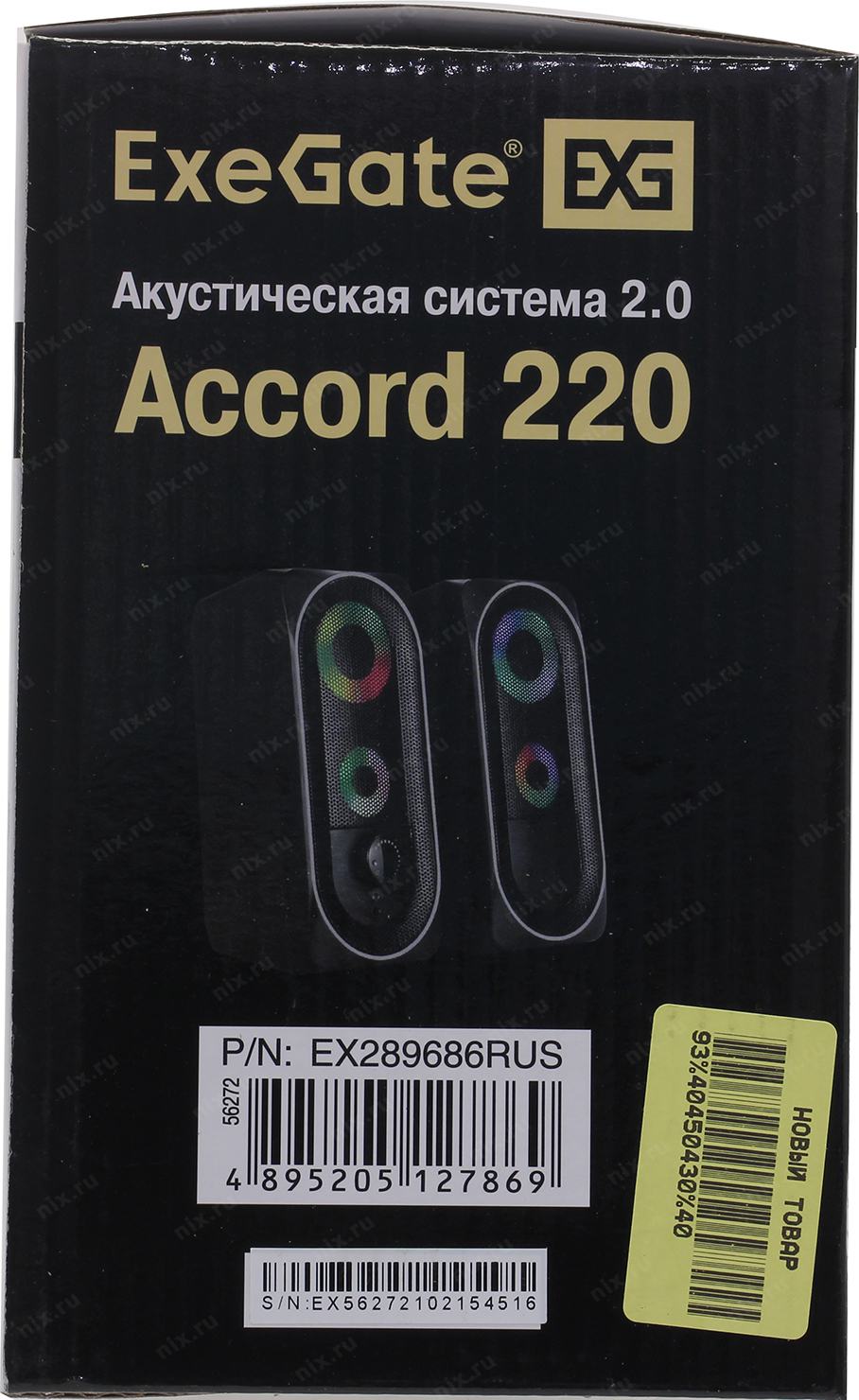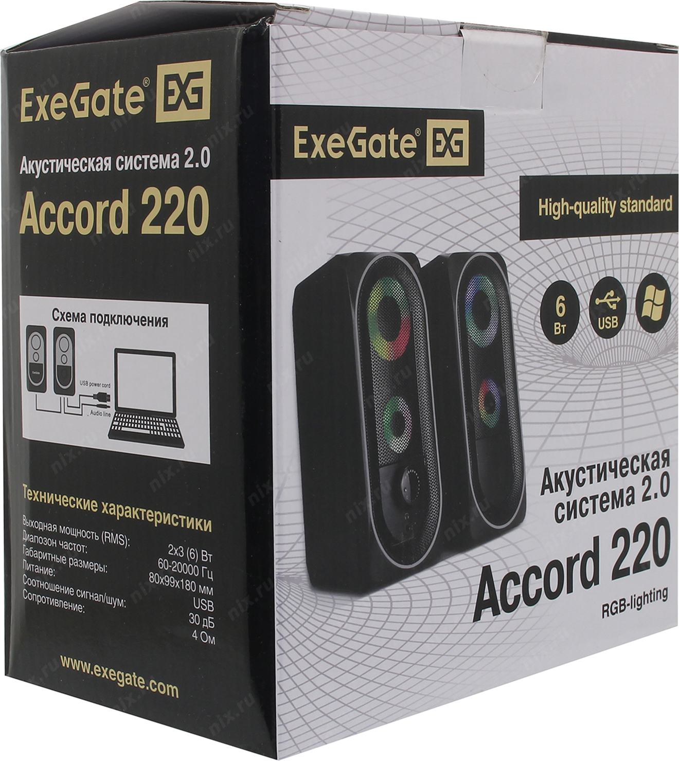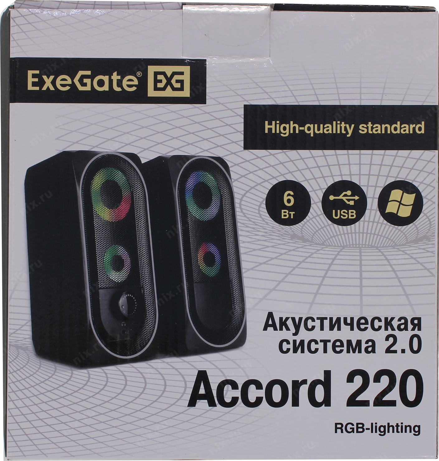 Колонки EXEGATE ExeGate Accord 220 EX289686RUS (питание USB, 2х3Вт (6Вт RMS), 60-20000Гц, цвет черный, RGB подсветка, Color Box)