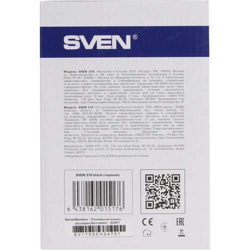 Колонки SVEN 318 черный (USB-порт ПК, ноутбука или адаптер 5V DC) [sv-015176]