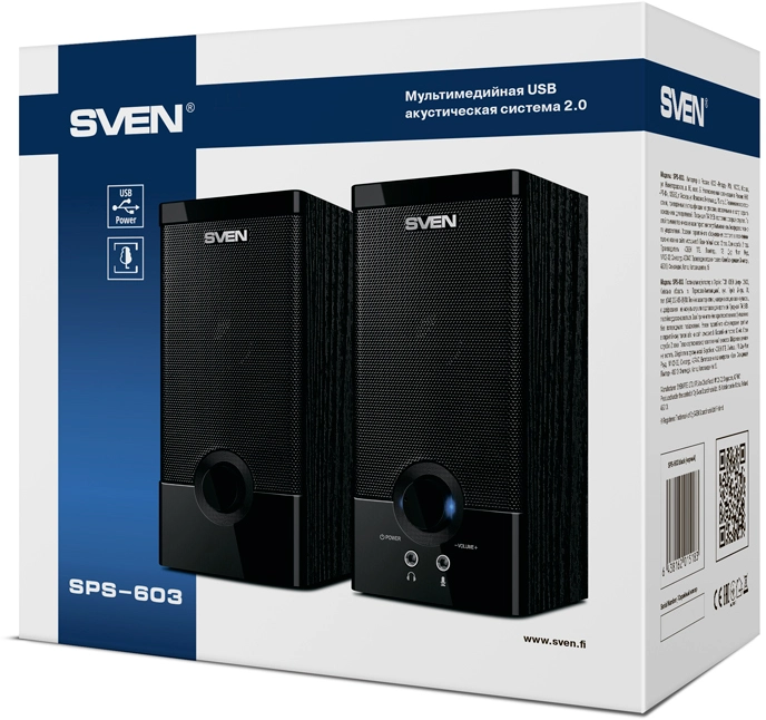 Колонки SVEN SPS-603 черный (USB-порт ПК, ноутбука или адаптер 5V DC) [sv-015183]