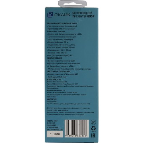 Презентер Оклик 695P Radio USB (30м) черный OKLICK 1011985