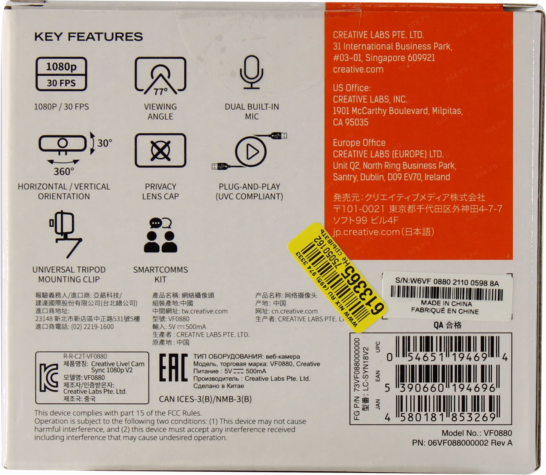Камера Web Creative Live! Cam SYNC 1080P V2 черный 2Mpix (1920x1080) USB2.0 с микрофоном (73VF088000000)