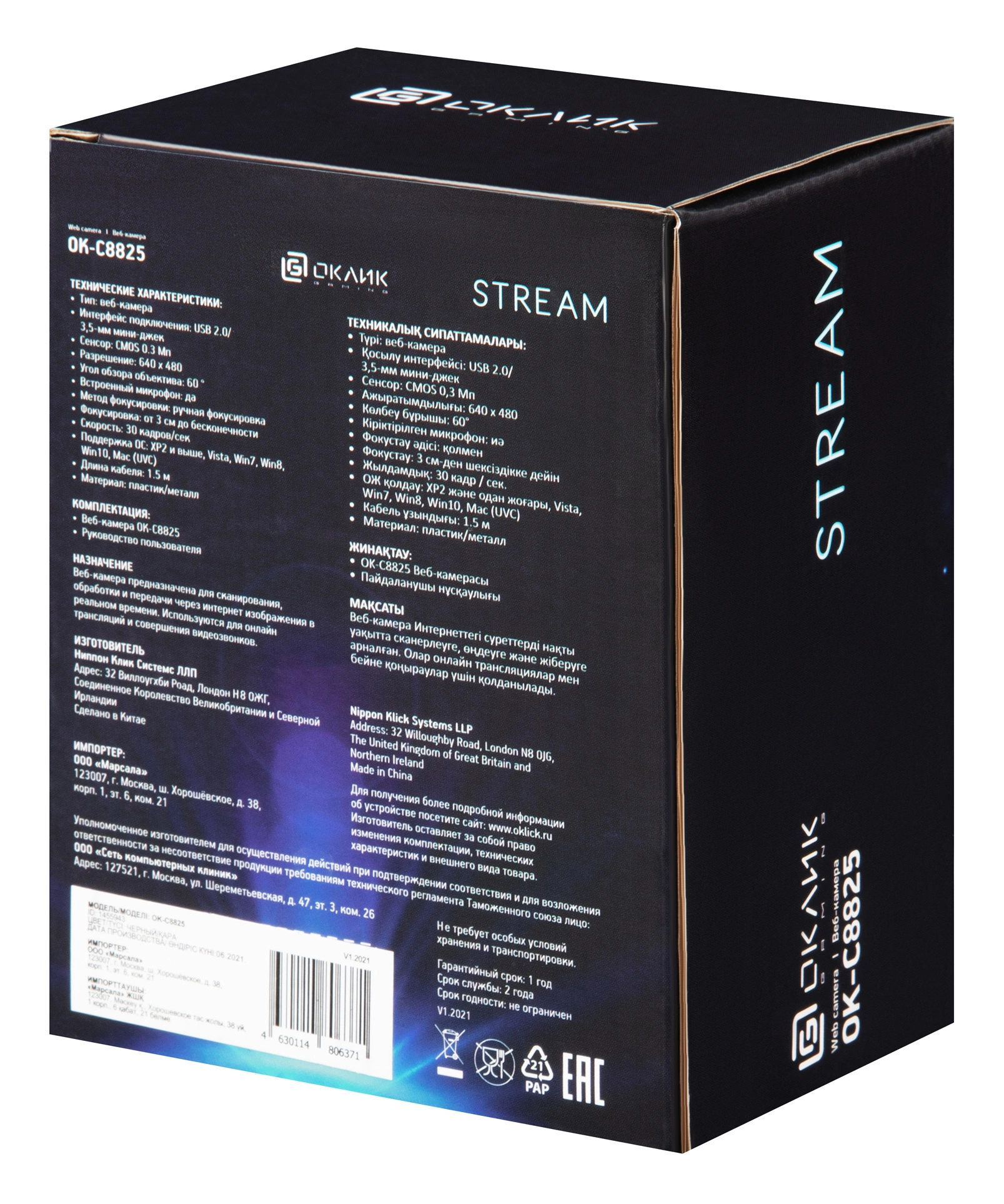 Камера Web Оклик OK-C8825 черный 0.3Mpix (640x480) USB2.0 с микрофоном OKLICK