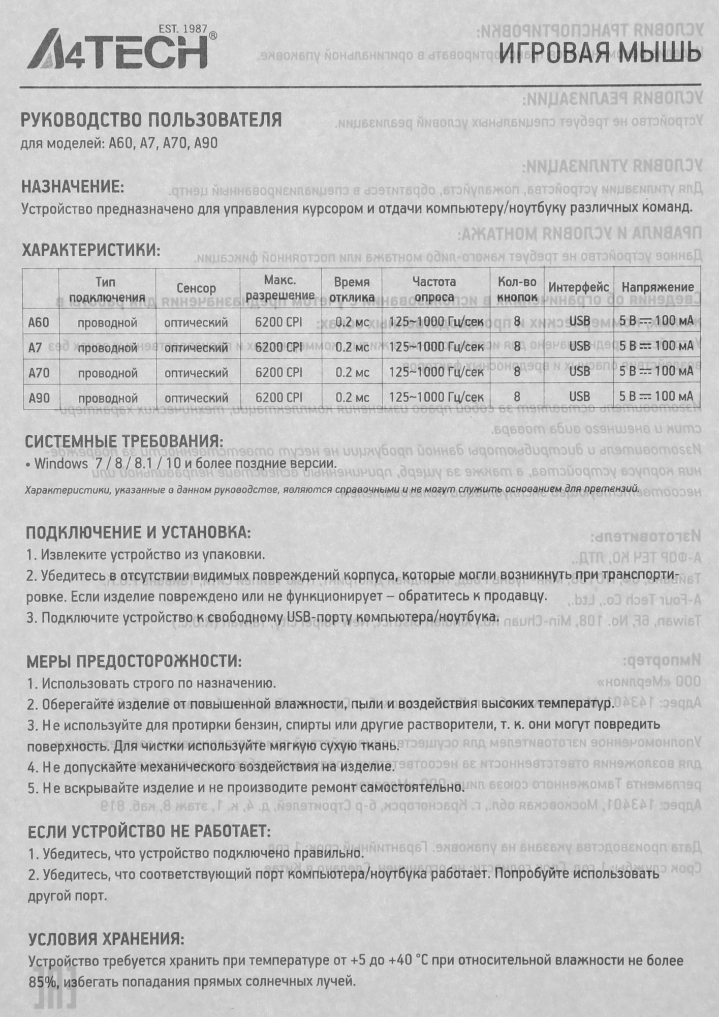 Мышь A4Tech Bloody A60A черный оптическая 6200dpi USB 8but (A60 ACTIVATED)