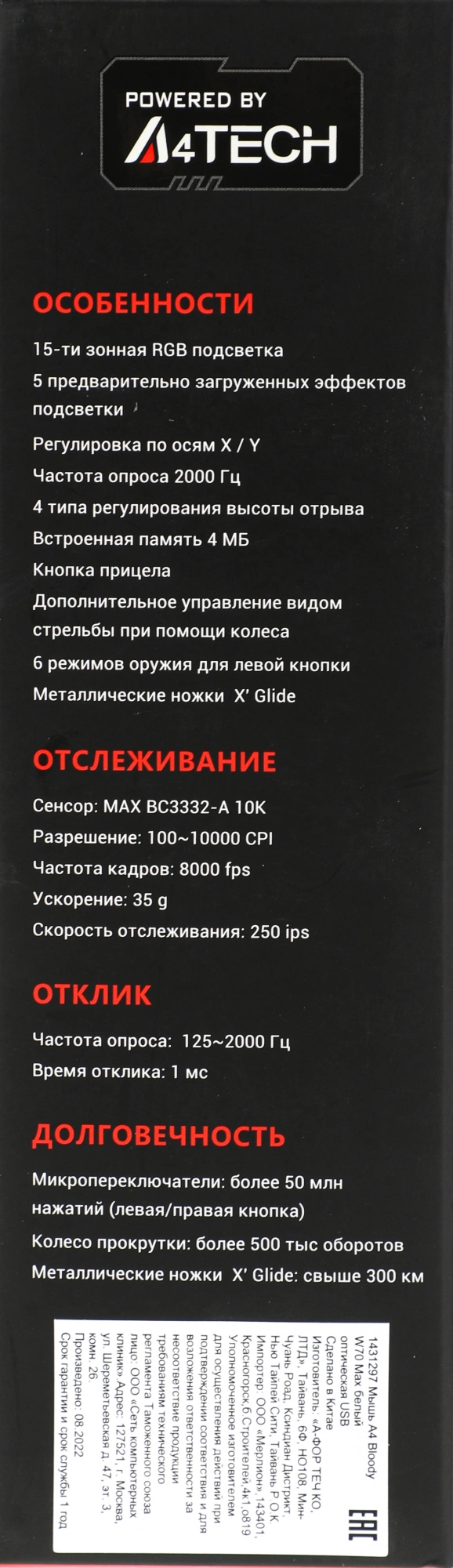игровой сенсор MAX BC3332-A, регулировка высоты отрыва. при установке ПО Bloody7, уровни core3, 4 активированы бесплатно