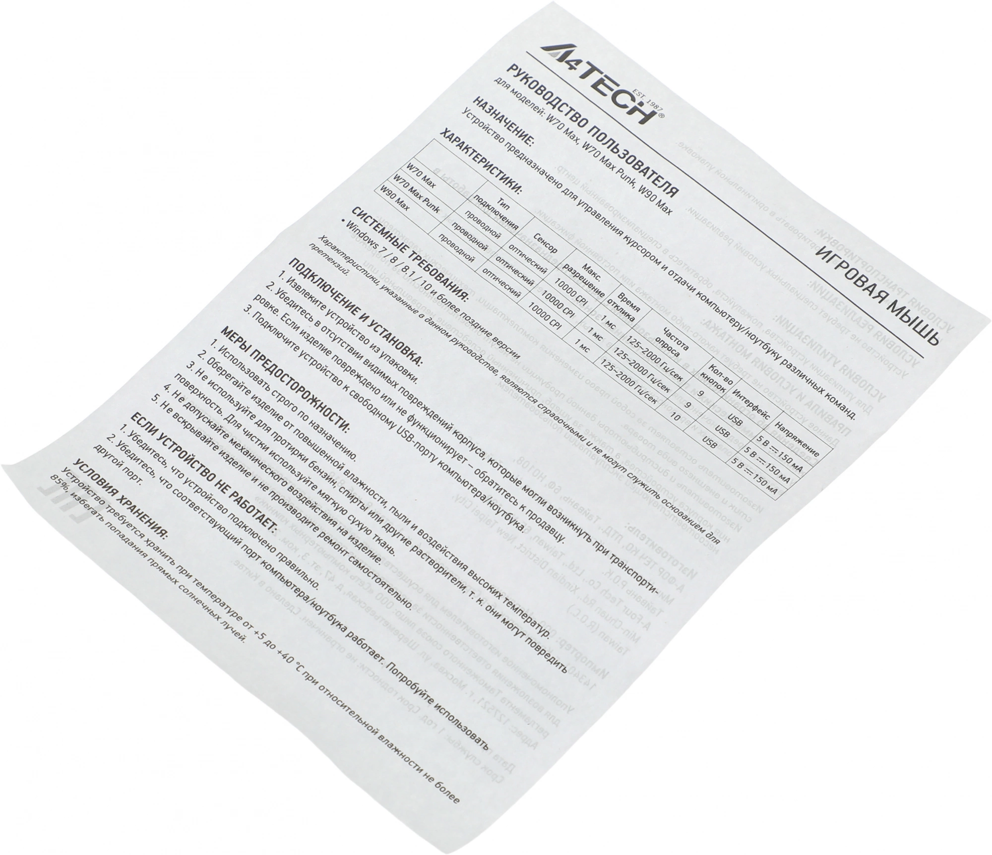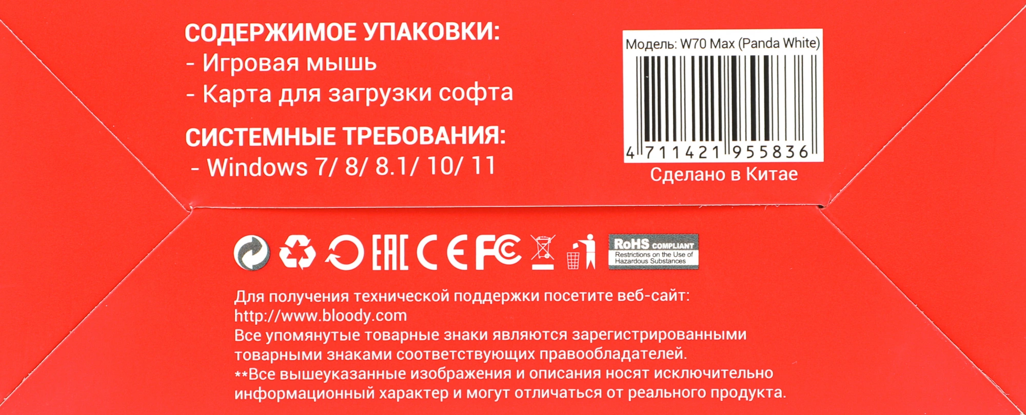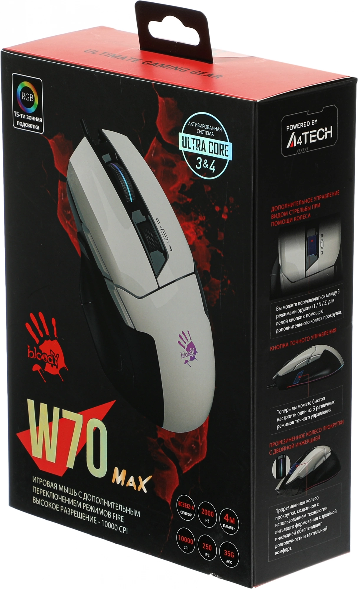 Мышь A4Tech Bloody W70 Max белый/ черный оптическая 10000dpi USB 10but (W70 MAX (PANDA WHITE) )