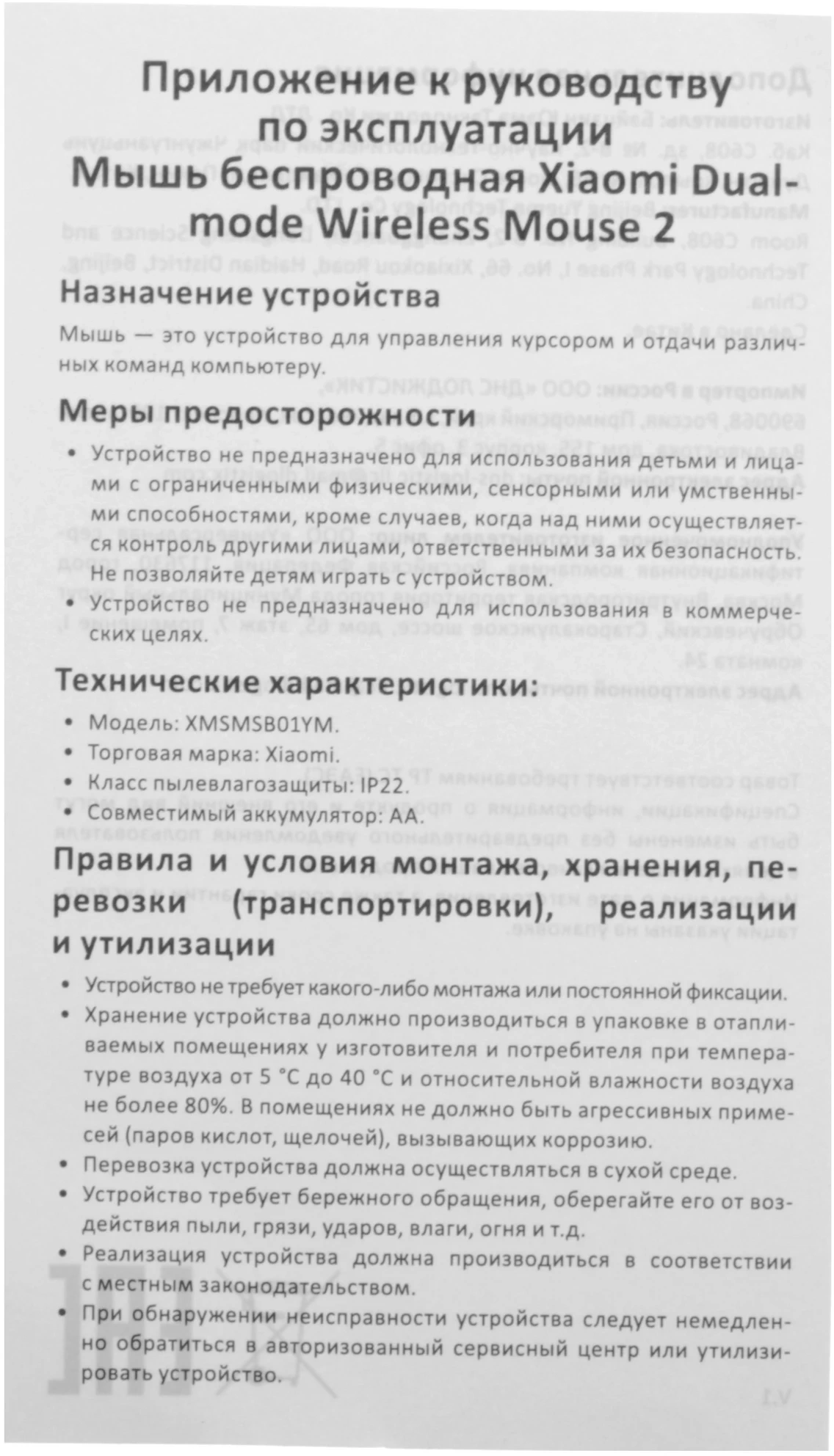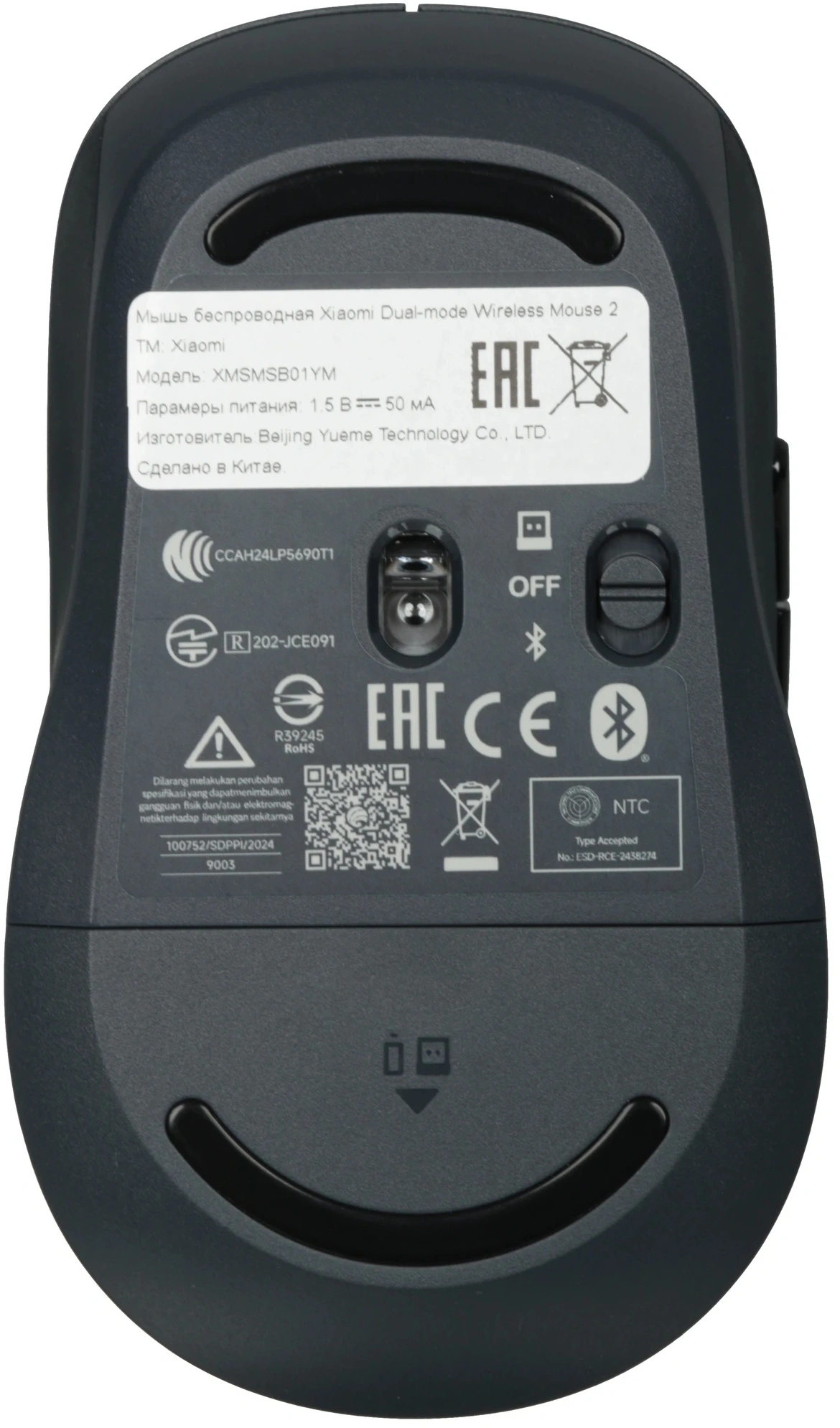 Мышь Xiaomi Dual-mode Wireless Mouse 2 черный оптическая 1200dpi silent беспров. BT/ Radio USB для ноутбука 4but (BHR8850GL)