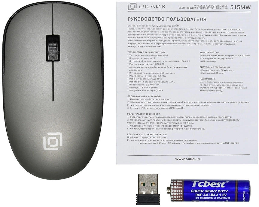 Мышь Оклик 515MW черный/ серый оптическая 1200dpi беспров. USB для ноутбука 3but (1018267) OKLICK