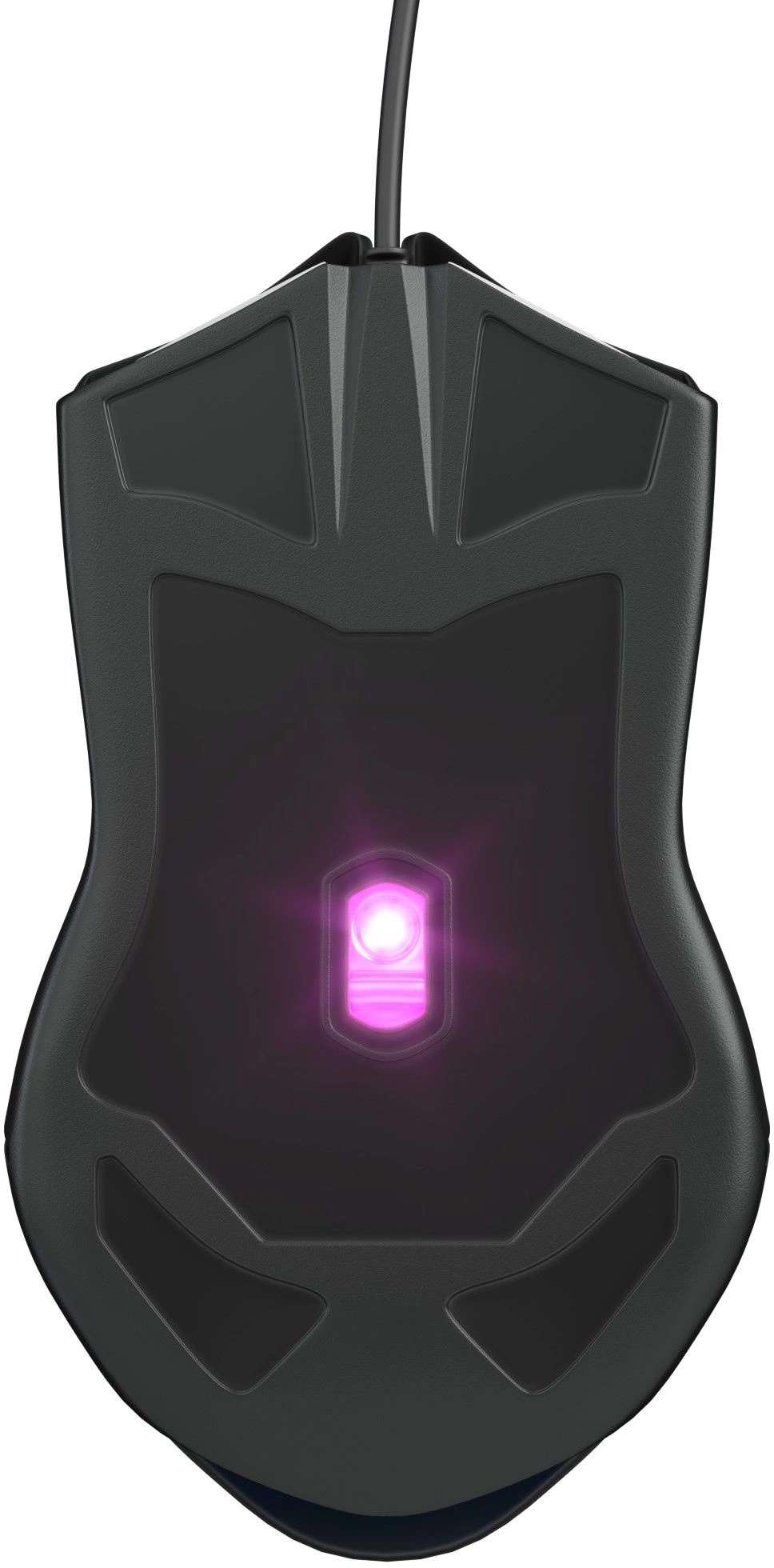 Игровая компьютерная мышь, настраиваемое разрешение до 3600 dpi. Провод в тканевой оплетке, позолоченный коннектор USB. Тефлоновые ножки. Дополнительные клавиши используемые и в офисном и в игровом режимах. Поверхность soft-touch. Отчетливый, тактильно приятный отклик клавиш.Многоцветная подсветка