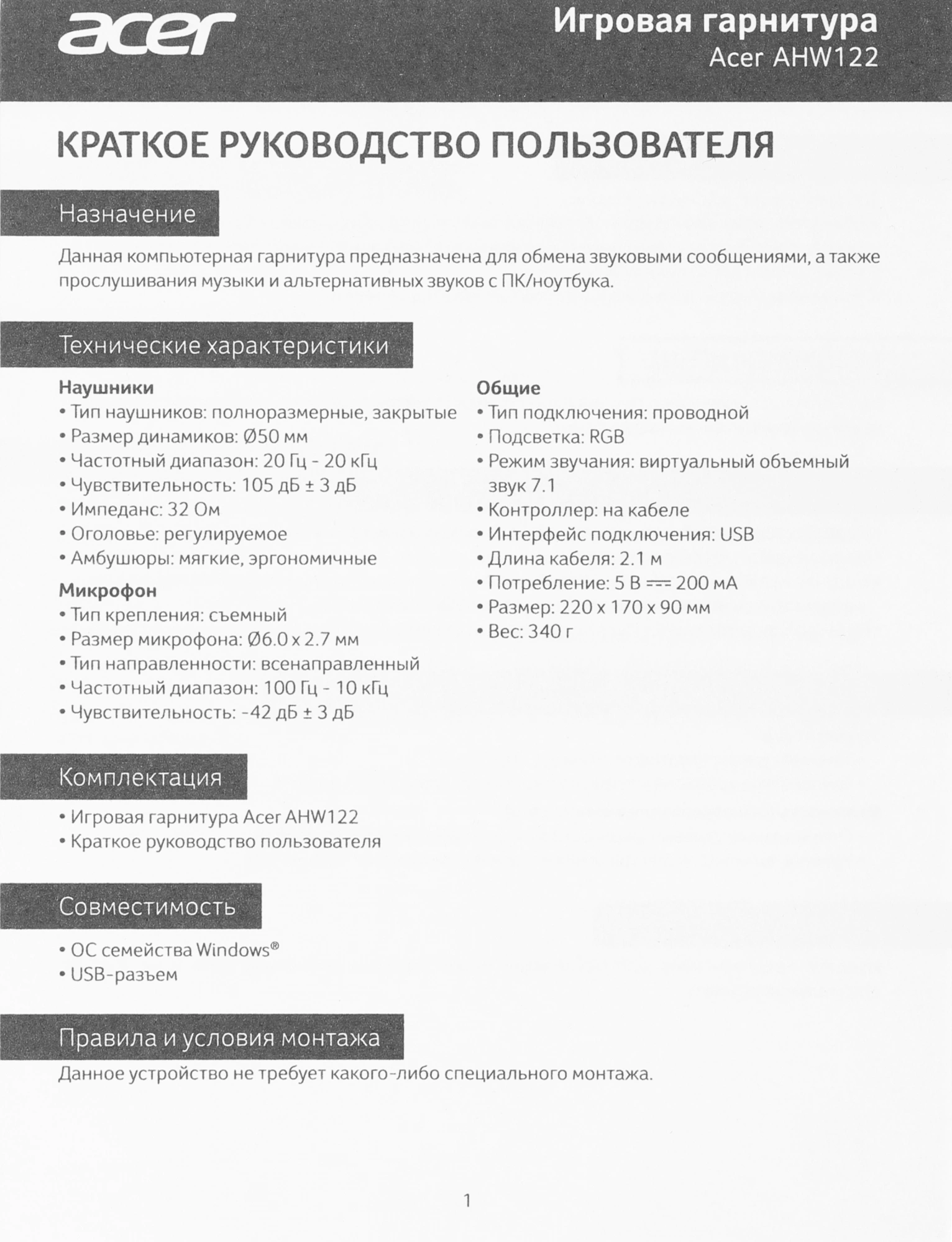 ГлавнаяМультимедиа и фото-видеоНаушники и микрофоныНаушники Acer