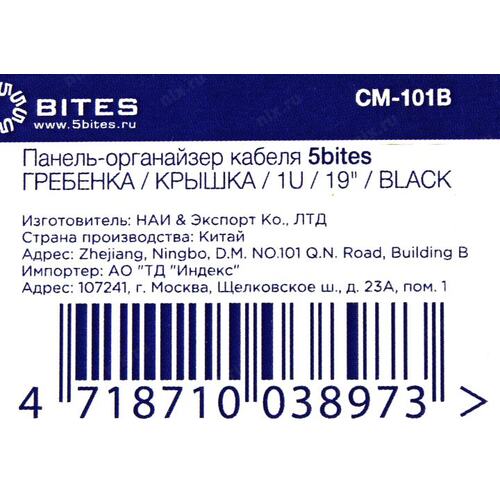 Монтажный шкаф 5bites Панель-органайзер кабеля CM-101B для сетевых шкафов ГРЕБЕНКА / КРЫШКА / 1U / 19" / BLACK