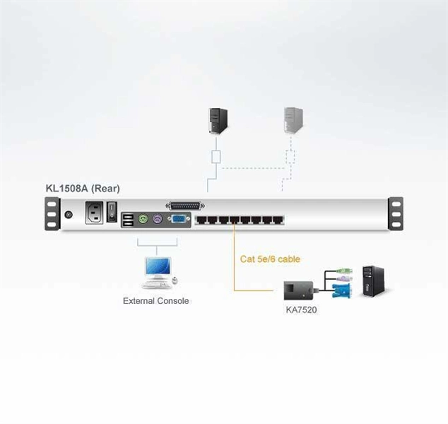 КВМ консоль ATEN 8P CAT-5 HIGH DENSITY DUAL RAIL LCD KVM <