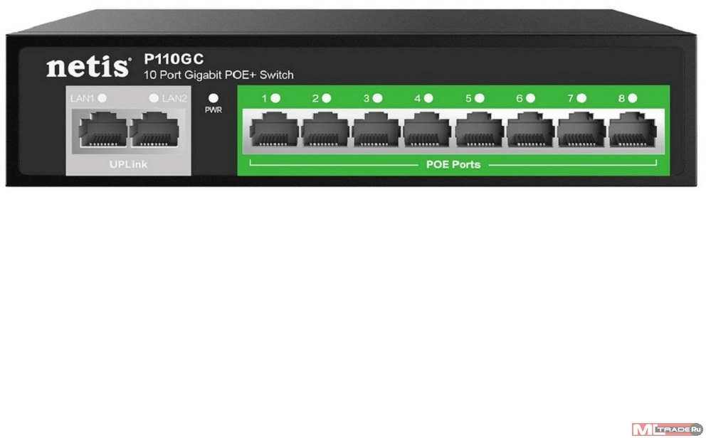10 портов 10/100/1000 Мбит/сек, 8 из них PoE, 2 из них UpLink