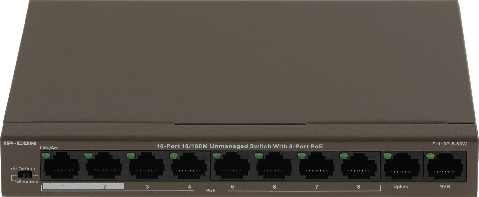 10 портов 10/100 Мбит/сек, 8 из них PoE PSE