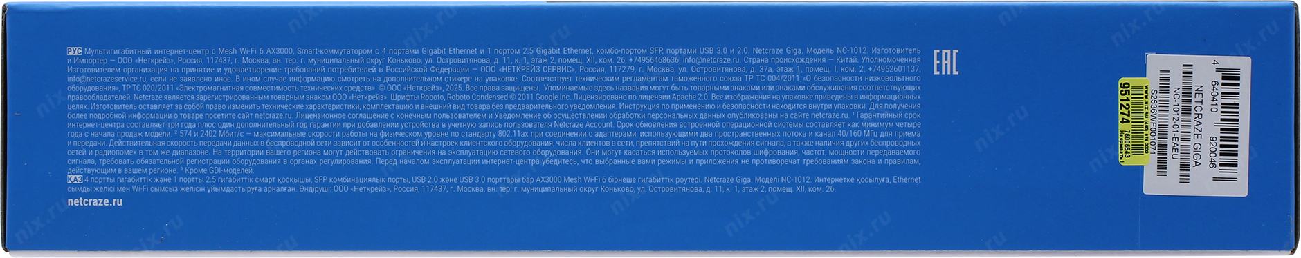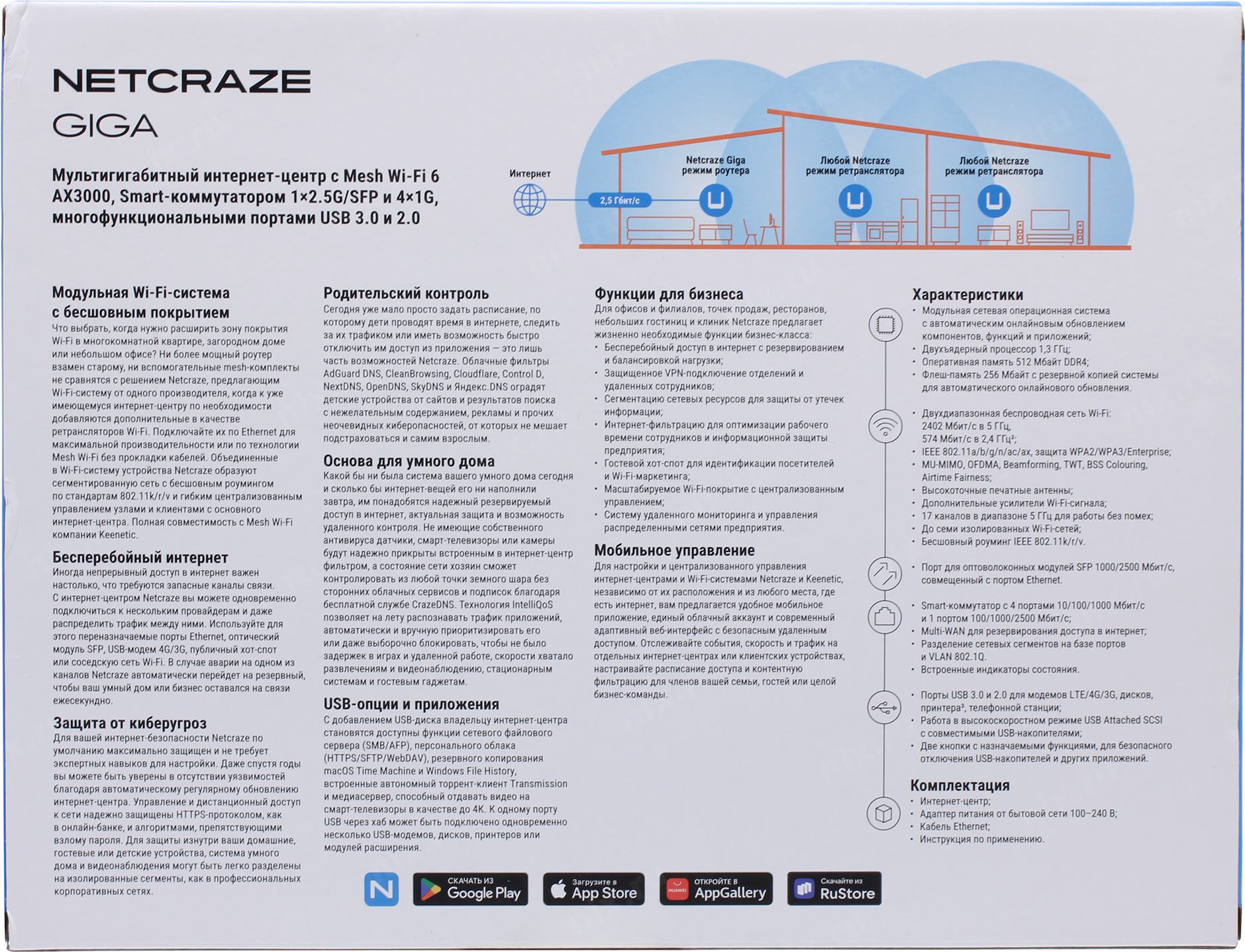 Сетевое оборудование Netcraze Giga (NC-1012) Мультигигабитный интернет-центр с Mesh Wi-Fi 6 AX3000, Smart-коммутатором 1x2.5G/SFP и 4x1G, многофункциональными портами USB 3.0 и 2.0