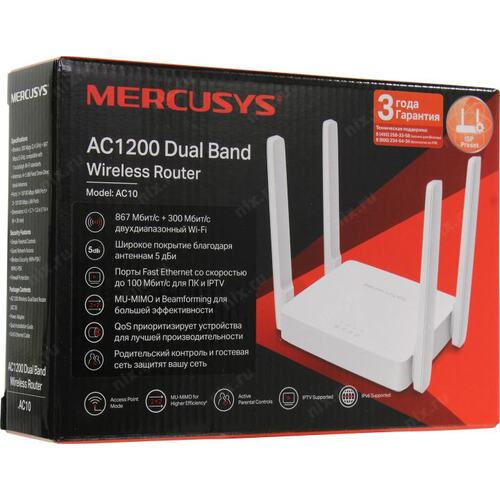 Роутер беспроводной Mercusys AC10 AC1200 10/100BASE-TX белый