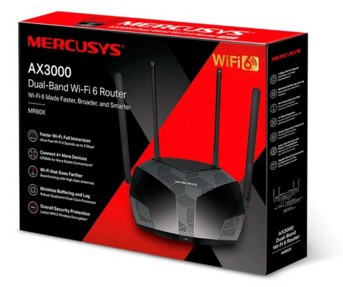 Роутер беспроводной Mercusys MR80X AX3000 10/100/1000BASE-TX черный