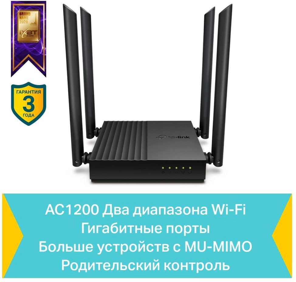 Маршрутизатор TP-LINK <Archer A64> Wireless Gigabit Router (4UTP 1000Mbps, 1WAN, 802.11a/b/g/n/ac, 867Mbps)