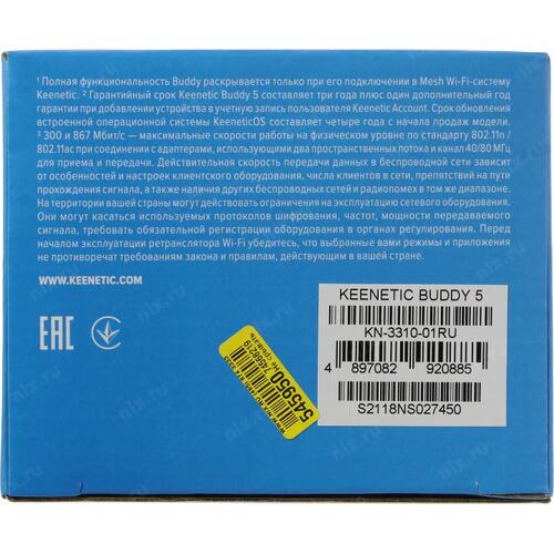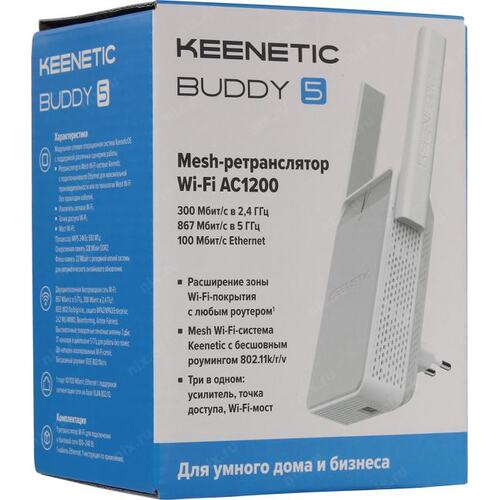 Сетевое оборудование Keenetic Buddy 5 (KN-3311) Двухдиапазонный Mesh-ретранслятор сигнала Wi-Fi AC1200 с портом Ethernet
