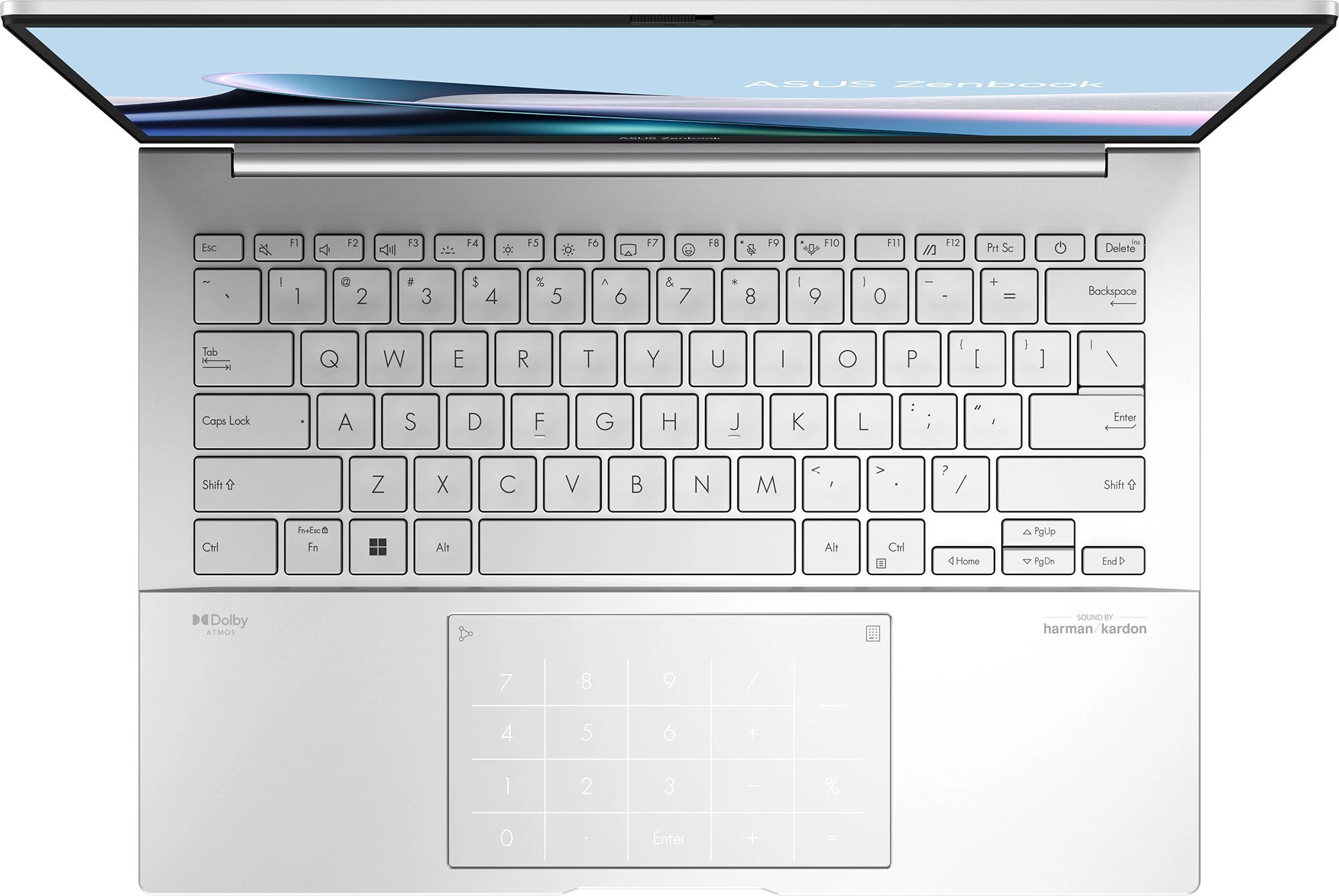 Ноутбук Asus Zenbook 14 UX3405CA-PP477 Core Ultra 9 285H 32Gb SSD512Gb Intel Arc 140T 14" OLED 3K (2880x1800) без ОС silver WiFi BT Cam Bag (90NB14W2-M00N00)