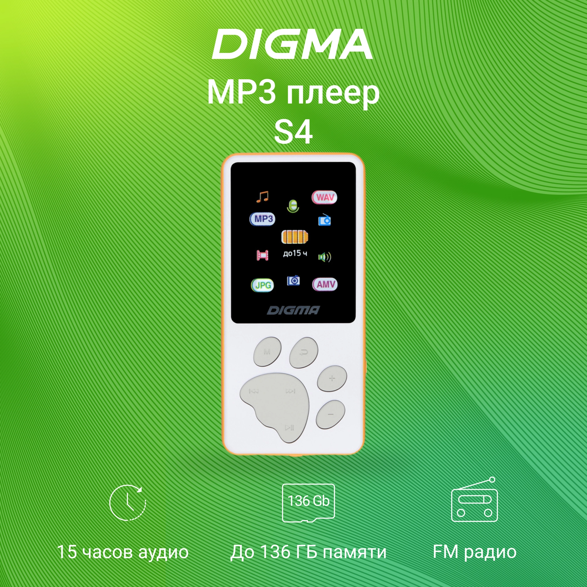 Плеер Hi-Fi Flash Digma S4 8Gb белый/ оранжевый/ 1.8" / FM/ microSDHC S4WO