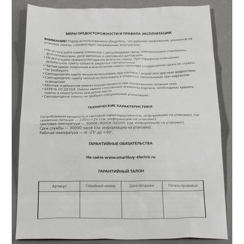Светодиодная лампа Smartbuy <