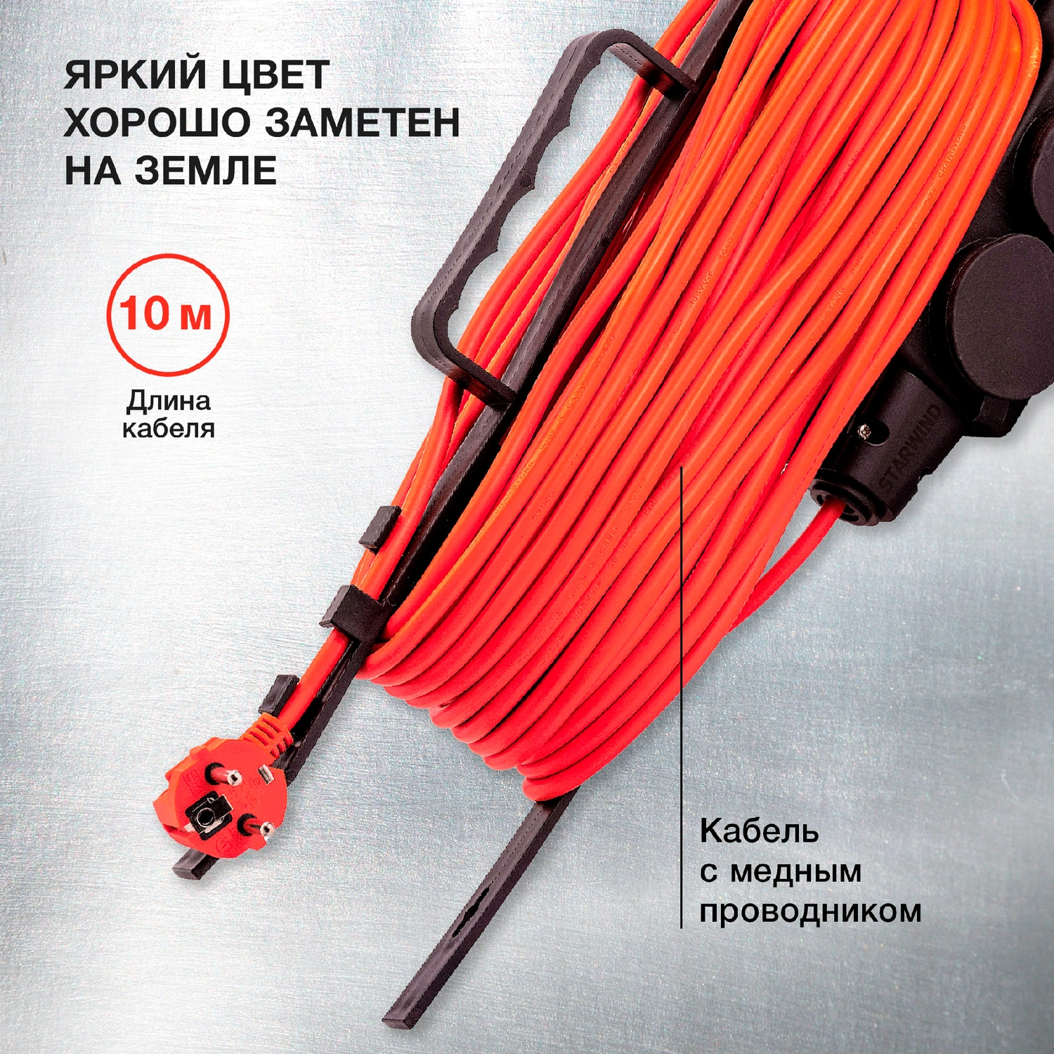 B 3x1.0кв.мм 3розет. 10м ПВС 10A пласт.рамка оранжевый