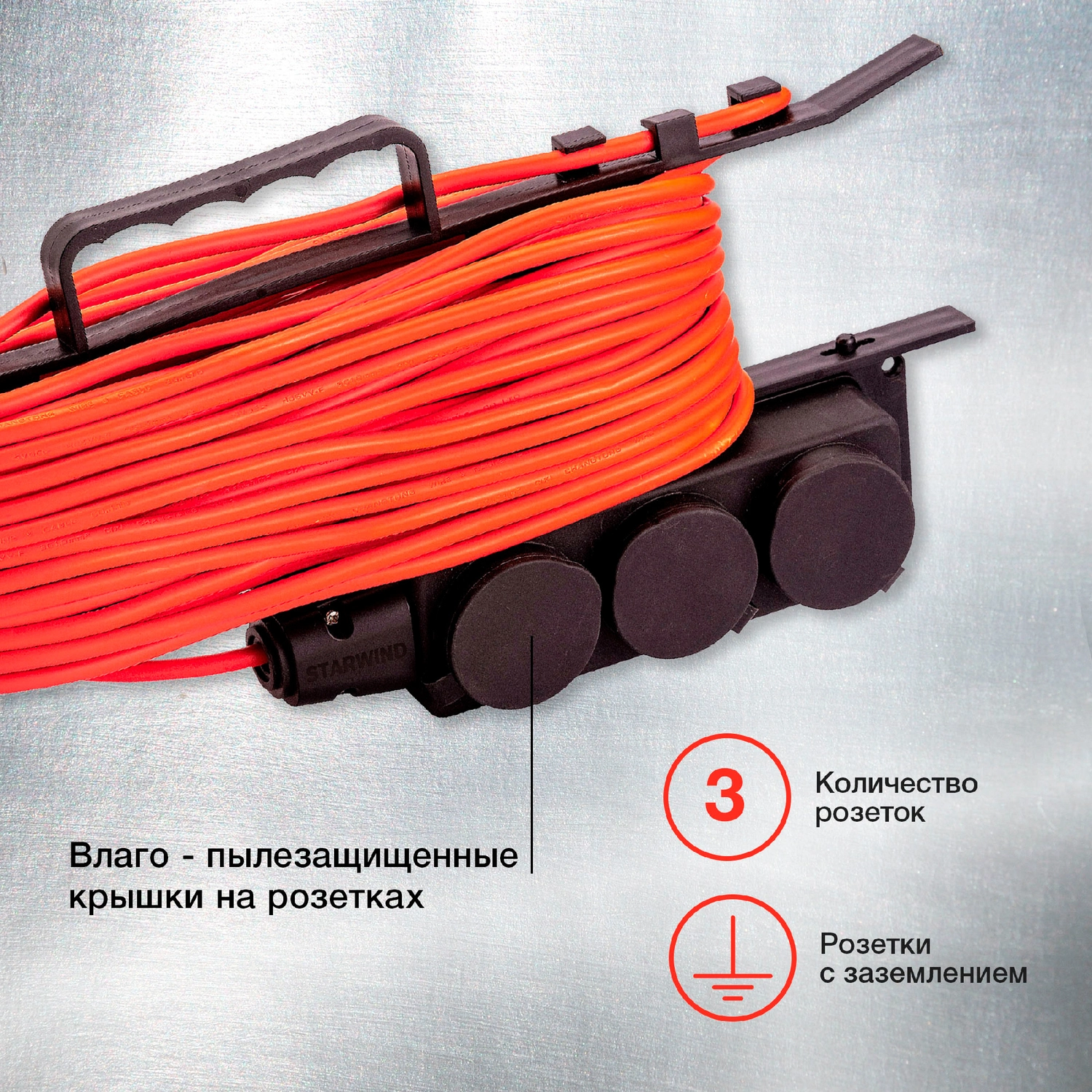B-16 3x0.75кв.мм 3розет. 10м ПВС 16A пласт.рамка оранжевый