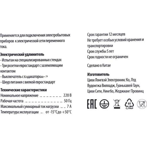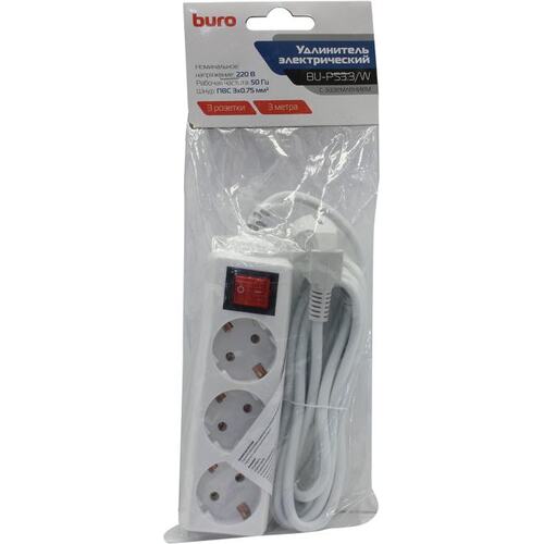 Сетевой удлинитель Buro BU-PS3.3/W 3м (3 розетки) белый (пакет ПЭ) (продается кратно 10 шт.)